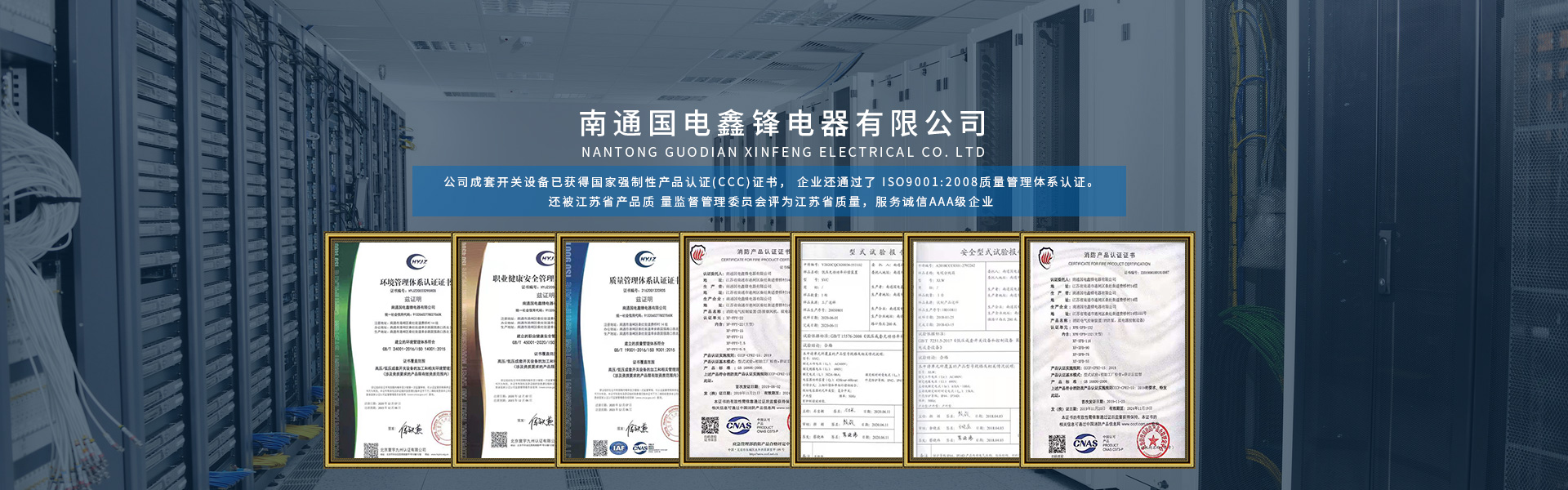 南通國電鑫鋒電器有限公司座落在有中國江蘇省南通市,南通是全國首批十四個沿海對外開放城市之一,是我國 民族紡織工業(yè)的搖籃和長江沿線的港口城市,又是中國的體育之鄉(xiāng), 教育之鄉(xiāng)崛起中的南通是江海大地上一顆璀燦的明珠。 公司成立于2005年,是專業(yè)生產(chǎn)各類高低壓成套開關(guān)設(shè)備的專業(yè)廠家,公司成套開關(guān)設(shè)備已獲得國家強制性產(chǎn)品認(rèn)證(CCC)證書, 企業(yè)還通過了 ISO9001:2008質(zhì)量管理體系認(rèn)證。
